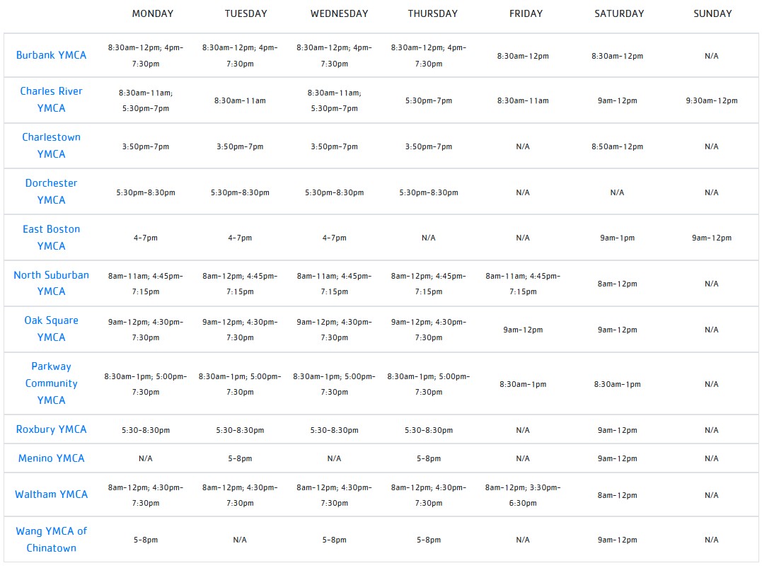 Vea el horario a continuación o comuníquese con el Centro YMCA para obtener más información sobre los servicios de Child Watch.